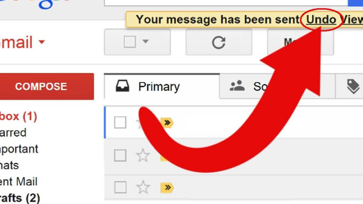 Gmail có một tính năng giúp người dùng có thể thu hồi các email đã gửi trước khi chúng đến với người nhận. Tính năng này quan trọng vì bất cứ lúc nào bạn cũng có thể gửi email đến nhầm người hoặc thậm chí email đến đúng người nhưng sai sót trong nội dung. Tính năng có tên Undo Send.
