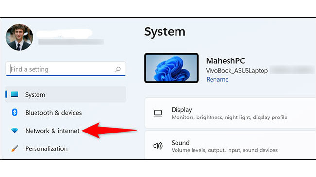 Trên giao diện Settings hiện ra, bạn nhìn sang danh mục bên trái và bấm chọn mục “Network & Internet”.