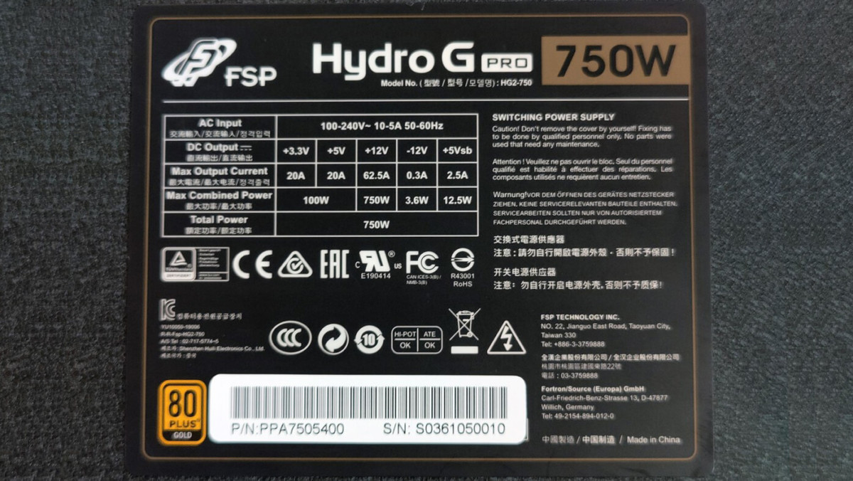 FSP Hydro G Pro 750W đạt chứng nhận 80+ Gold, cam kết đem lại sự ổn định cao trong quá trình hoạt động.