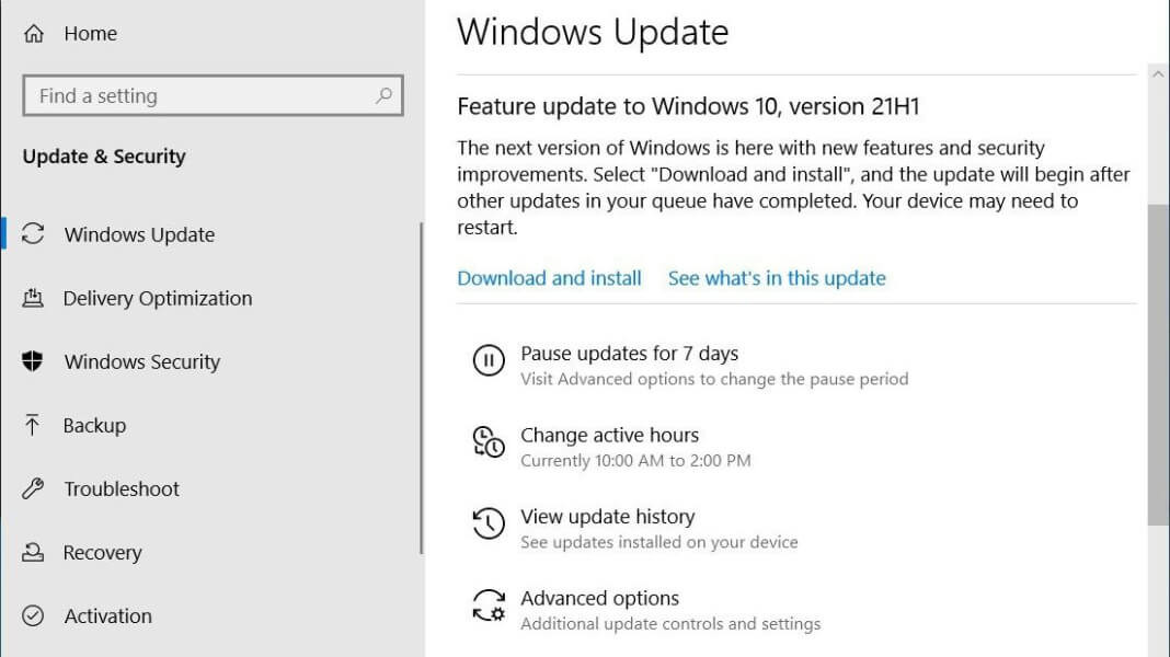 Tháng trước, Microsoft phát hành bản cập nhật tính năng Windows 10 21H1, còn được gọi là May 2021 Update, cho người dùng dưới dạng bản cập nhật tùy chọn được hiển thị khi thực hiện thủ công Check for updates trong Windows Update.