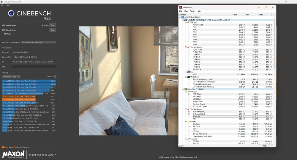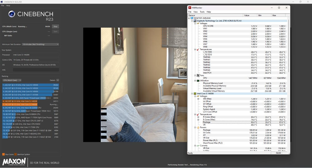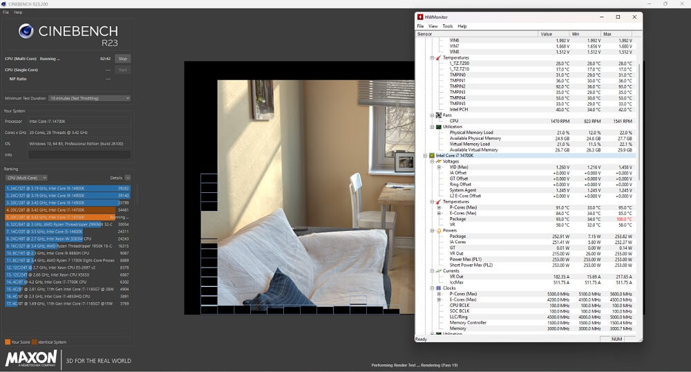 - Kiểm tra nhiệt độ với I7-14700K chạy Cinebench R23