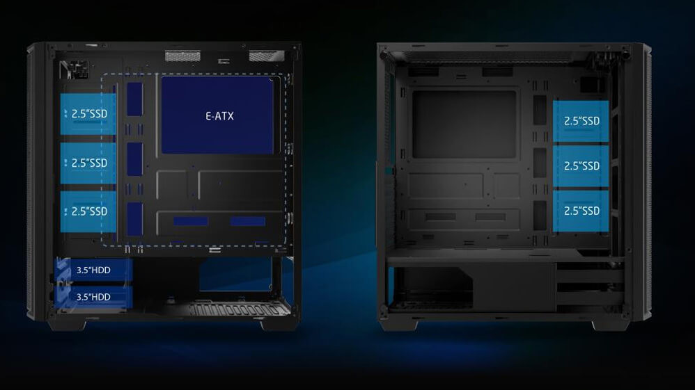 XIGMATEK MERCURY hỗ trợ gắn ổ cứng 2.5’’ SSD x 3 và 3.5’’ HDD x 2