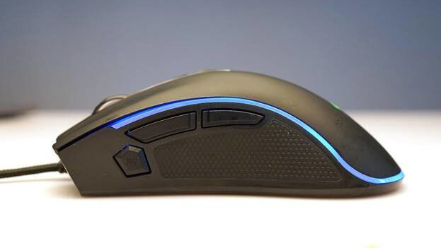 Hai bên chuột được thiết kế “sần” tạo cảm giác nắm chắc chắn khi cầm. Axe còn có thêm nút Targen để có thể dể dàng chơi các game FPS.