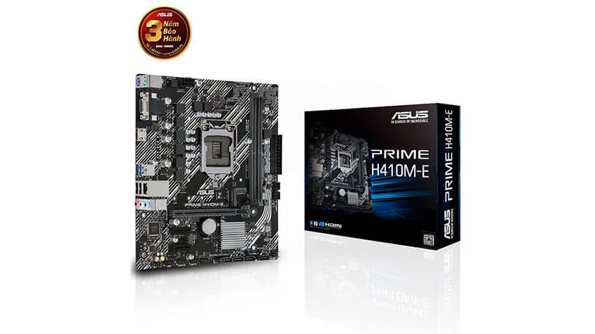 ASUS PRIME H410M-E là sản phẩm giá rẻ, hỗ trợ socket LGA 1200 mới nhất của Intel phù hợp cho việc sử dụng hàng ngày với những tác vụ cơ bản. Các CPU i3 trở xuống sẽ hoàn hảo để chạy kèm chiếc bo mạch chủ này.
