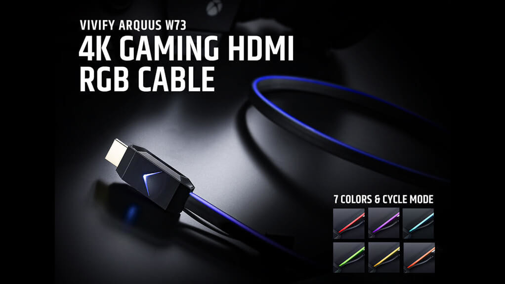 Vivify đã ra mắt cáp HDMI 2.0b chơi game 4K tích hợp ánh sáng RGB, VIVIFY ARQUUS W73. VIVIFY ARQUUS W73 sẽ thay đổi cách người dùng nghĩ về dây cáp, có hiệu ứng ánh sáng RGB ngay trên cáp. VIVIFY ARQUUS W73 được ra mắt nhằm phục vụ người dùng đam mê chơi game trên các hệ máy tay cầm, PC, rạp hát tại gia với hỗ trợ độ phân giải 4K ở tốc độ khung hình cao. Nó đã được thử nghiệm và đạt chứng nhận 4K cao nhất bởi DPL Labs, cho khả năng tương thích 4K, băng thông 18Gbps và độ sâu màu.